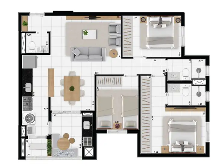 Apartamento padrão, pronto